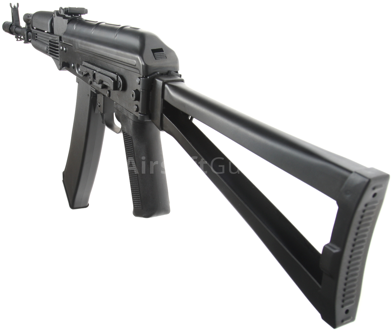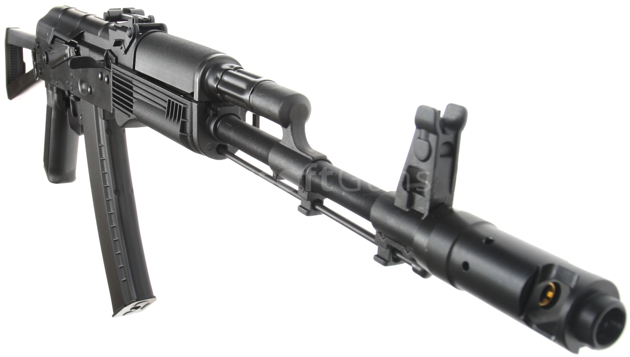 Zbraň je vybavená bočne sklopnou pažbou, plne nastaviteľnými mieridlami, úchytmi na popruh a robustným kompenzátorom, ktoré sú samozrejme vyrobené z ocele. Na ľavej strane tela sa nachádza bočná montážna lišta, pomocou ktorej je možné k zbrani ľahko pripevniť bočnú základňu AK s optikou alebo kolimátorom. V tejto verzii sa batéria vkladá pod kovový kryt závorníka, t. j. do priestoru nad mechaboxom. Konštrukcia je celá z ocele, takže iba rukoväť, úchop a zásobník sú vyrobené z pevného čierneho polyméru.