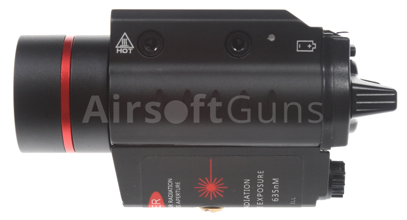 Celokovové taktické svietidlo M7P (LED) s laserom a integrovanou montážou na zbrane, ktoré majú RIS koľajnice so šírkou 20 mm (+ 5 mm). Svietidlo je vybavené super svietivou Cree diódou, takže poskytuje veľmi intenzívny kužeľ oslňujúceho bieleho svetla. Na spodnej strane je plne nastaviteľný laser červenej farby (5mW, 635nm). Kolískový spínač na zadnej časti umožňuje chvíľkové alebo dlhodobé zopnutie. Voličom jednotlivých režimov docielite požadované nastavenie: len svietidlo, svietidlo a laser súčasne, iba laser. Ako napájací zdroj sa používajú 2 kusy batérií CR123a, ktoré nie sú súčasťou balenia. Nie je možné použiť žiadne nabíjacie akumulátory z dôvodu ich vyššieho napätia, ktoré môže zapríčiniť poškodenie diódy.