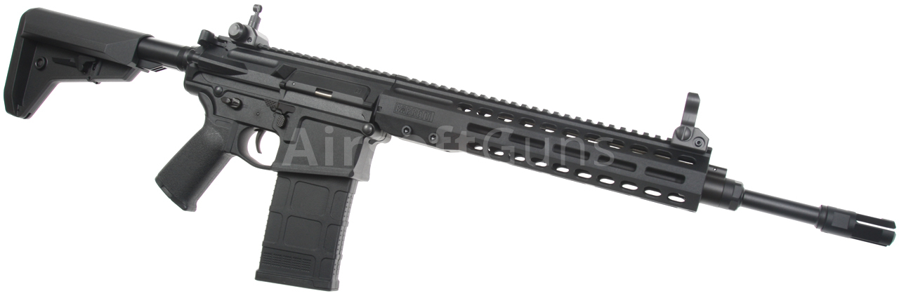 Zbraň je vybavená teleskopickou pažbou EMG, ktorá ponúka 5 polôh nastavenia dĺžky a umožňuje vloženie odporúčaného typu LiPol batérie. Kovová vonkajšia hlaveň (dĺžka 16 palcov) je vybavená trojramenným kovovým kompenzátorom, ktorý je pripevnený na 14 mm ľavotočivý závit.