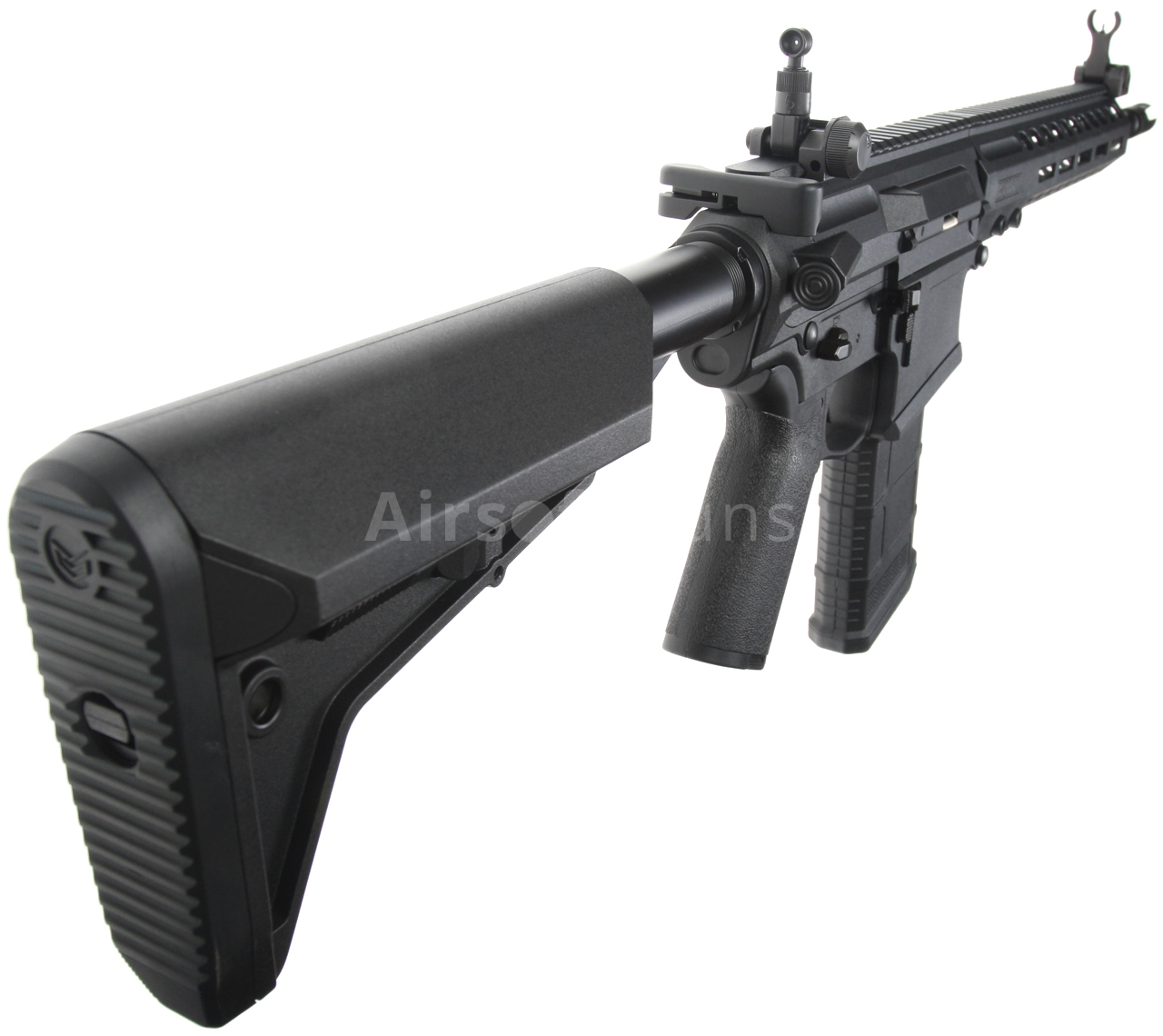 Zbraň je vybavená párom kovových sklopných a plne nastaviteľných mieridiel KAC. Napriek tomu je možné ľahko namontovať kolimátorové mieridlo alebo zväčšovací puškohľad. Rukoväť perfektne sedí na telo a ponúka maximálnu ergonómiu. Zbraň má plne funkčný vyhadzovací otvor, plne funkčné tlačidlo poistky závorníka a rukoväť závorníka. Prepínač režimov streľby a uvoľňovač závorníka sú obojručné, čím sa zachováva vynikajúca ergonómia aj pre ľavákov. Funkcia poistky závorníka je tiež verne napodobená.