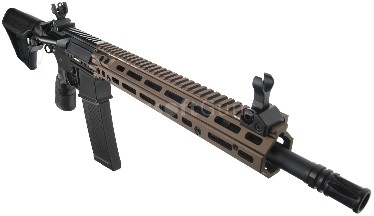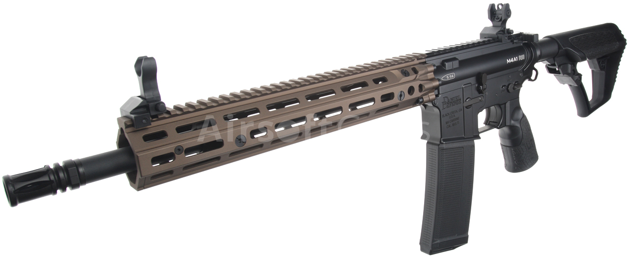 Zbraň je vybavená teleskopickou pažbou Daniel Defence, ktorá ponúka 6 polôh nastavenia dĺžky a umožňuje vloženie odporúčaného typu LiPol batérie. 14,5-palcová kovová vonkajšia hlaveň je vybavená klasickým kompenzátorom M4A1, ktorý je pripevnený na 14 mm ľavotočivý závit.
