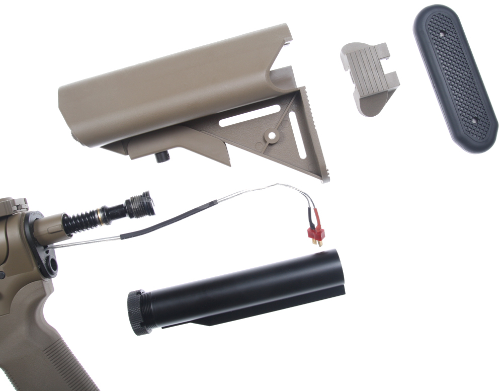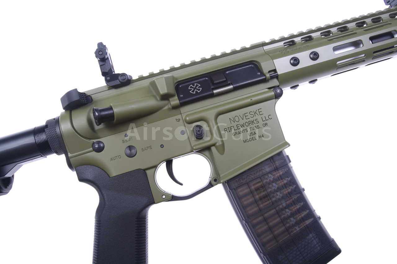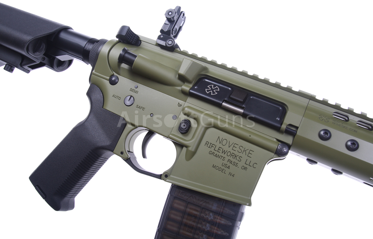 Zbraň je vybavená párom sklopných a plne nastaviteľných mieridiel. Napriek tomu je možné ľahko namontovať kolimátorové mieridlo alebo zväčšovací puškohľad. Rukoväť v štýle Noveske perfektne sedí k telu a ponúka maximálnu ergonómiu. QD slot na zadnej strane tela pod rúrkou slúži na pripevnenie popruhu. Zbraň má plne funkčný vyhadzovací otvor, plne funkčné tlačidlo poistky závorníka a rukoväť závorníka. Verne je napodobená aj činnosť závorníka. Táto replika je jednoducho vyladená k dokonalosti, pokiaľ ide o vernú napodobeninu strelnej zbrane. Žiadne podvádzanie, na ktoré sme zvyknutí od iných, často drahších výrobcov.