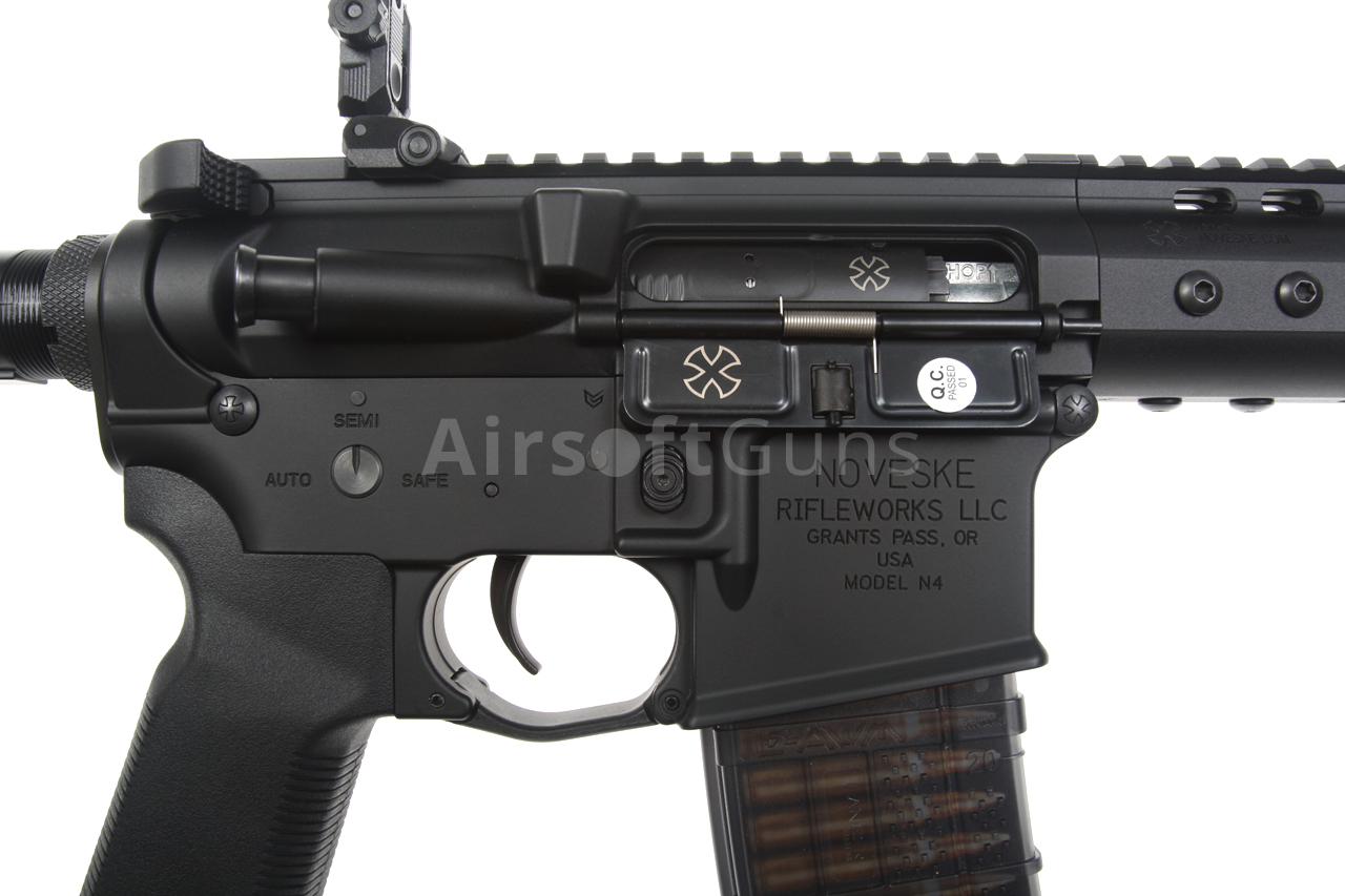 Zbraň je vybavená párom sklopných a plne nastaviteľných mieridiel. Napriek tomu je možné ľahko namontovať kolimátorové mieridlo alebo zväčšovací puškohľad. Rukoväť v štýle Noveske perfektne sedí k telu a ponúka maximálnu ergonómiu. QD slot na zadnej strane tela pod rúrkou slúži na pripevnenie popruhu. Zbraň má plne funkčný vyhadzovací otvor, plne funkčné tlačidlo poistky závorníka a rukoväť závorníka. Verne je napodobená aj činnosť závorníka. Táto replika je jednoducho vyladená k dokonalosti, pokiaľ ide o vernú napodobeninu strelnej zbrane. Žiadne podvádzanie, na ktoré sme zvyknutí od iných, často drahších výrobcov.