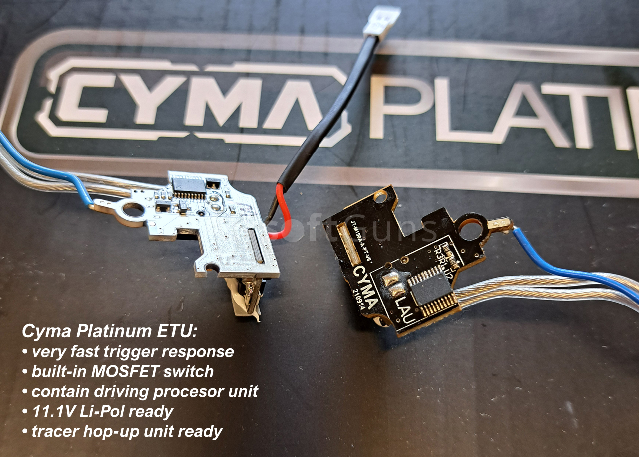 Cyma Platinum Edition prešla od roku 2025 významnými vylepšeniami v porovnaní s predchádzajúcou sériou. Telá a vonkajšie časti sú teraz vyrobené z najlepších materiálov. Mnohé časti sú vyrobené na presných CNC strojoch. Bežné ABS plasty boli nahradené nylonovým polymérom zmiešaným so sklenenými vláknami, aby sa zvýšila odolnosť. Vnútorné časti sú vybavené tým najlepším, čo súčasný svet airsoftu ponúka, ako sú nové Hop-Up gumy, upravené kovové komory, presné 6,03 mm hlavne, nové vystužené QSC mechaboxy, odolné vnútorné CNC časti, špičková technológia zbraní a veľmi často aj elektronické prepínanie (ETU).