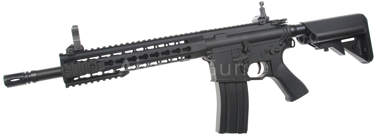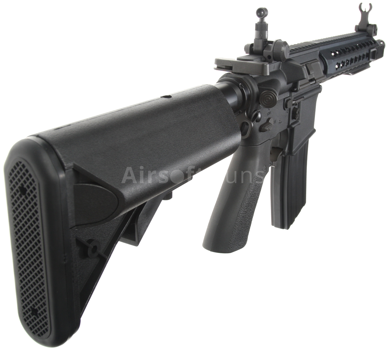 Zbraň pochádza z najnovšej edície, ktorá má novo navrhnuté telo s funkčným vyhadzovacím otvorom, rukoväťou závorníka a kovovou imitáciou závorníka. Moderný typ SR-15 s plastovým Keymod predpažbím (dĺžka 10 palcov), taktickou pažbou Crane (6 polôh), pištoľovou rukoväťou HK416 a sklopnými mieridlami KAC, medzi ktoré je možné pripojiť rôzne optiky alebo kolimátory. Na pripevnenie popruhu sa používa obojstranné oceľové pútko medzi telom a pažbou; QD uchytenie popruhu na tele zbrane je len imitáciou. Obojstranné ovládacie prvky sú tiež len imitáciami (dummy Ambidextrous). Kovová vonkajšia hlaveň (dĺžka 11,5 palca) je vybavená plastovým kompenzátorom, ktorý je pripevnený na 14 mm ľavotočivý závit.