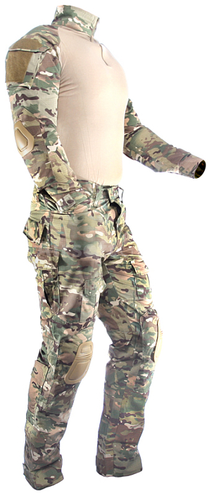 Kompletné bojová uniforma (maskáče) technicky prepracovaného strihu Gen. 2 distribuovaná pod značkou ACM. Celý komplet vo veľkosti L je ušitý v modernom maskovacím vzoru MultiCam.