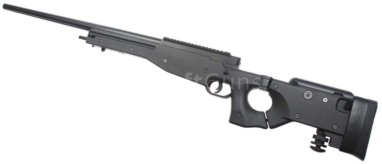 Manuálna airsoftová zbraň. Replika ostreľovačskej pušky L96 AWF [CM.706] od Cyma so sklopnou pažbou v čiernej farbe. Prototyp strelnej zbrane vyrába britská spoločnosť Accuracy International pod označením AWF (Arctic Warfare Folding) a je bezpochyby jednou z najpopulárnejších civilných, policajných a vojenských pušiek na svete.