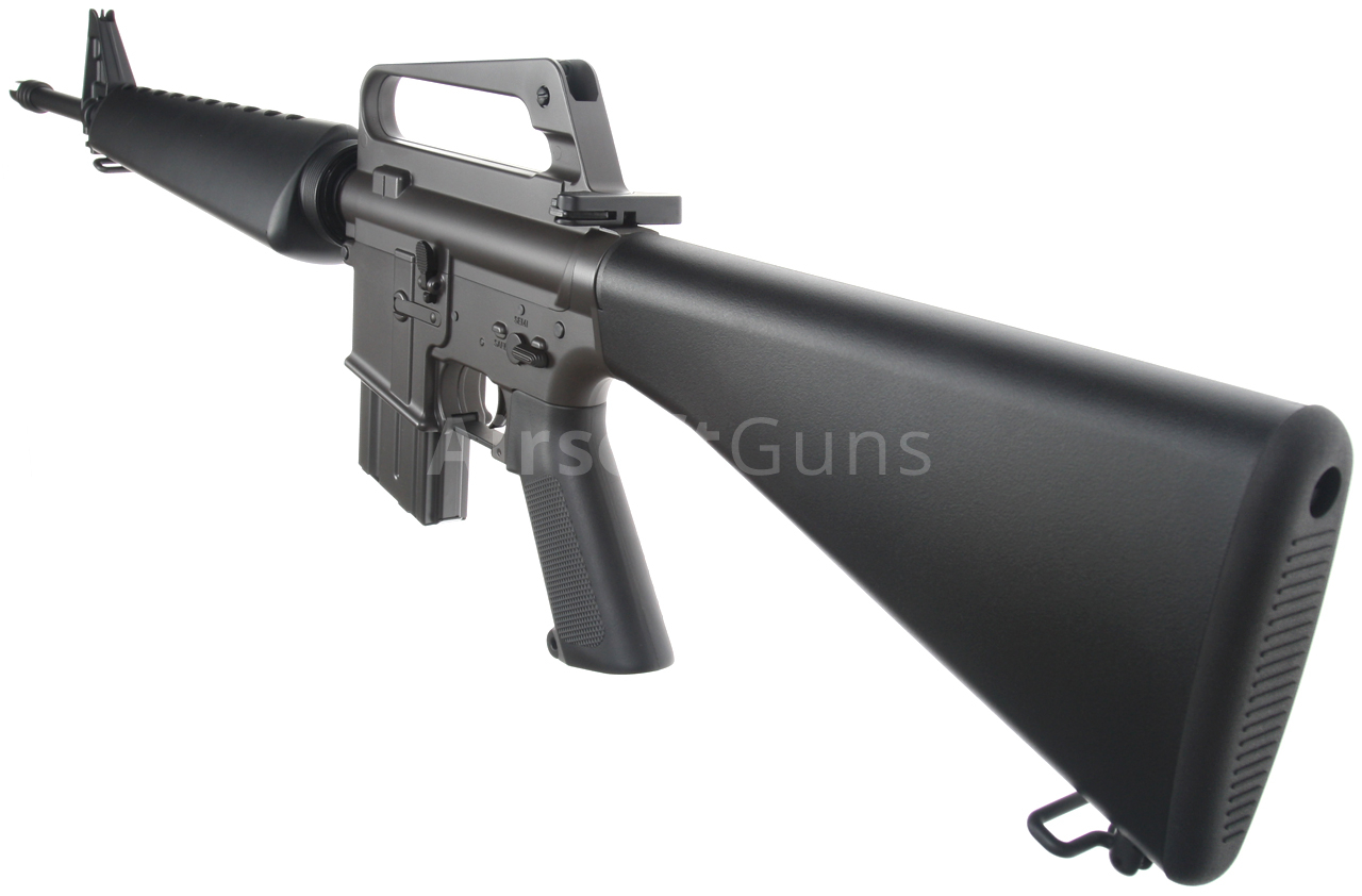 Elektrická airsoftová zbraň. Replika M16A1 VN Vietnam verzia [CM.009C] Cyma Standard Edition v celokovovom vyhotovení s elektronickým spínaním (mosfet/ETU) v šedej farbe. Legendárna puška M16, ktorá bola zavedená počas vojny vo Vietname. Bola to prvá významná novinka v rodine zbraní Armalite AR-15, ktorú americká armáda prijala ako svoju primárnu pechotnú pušku.