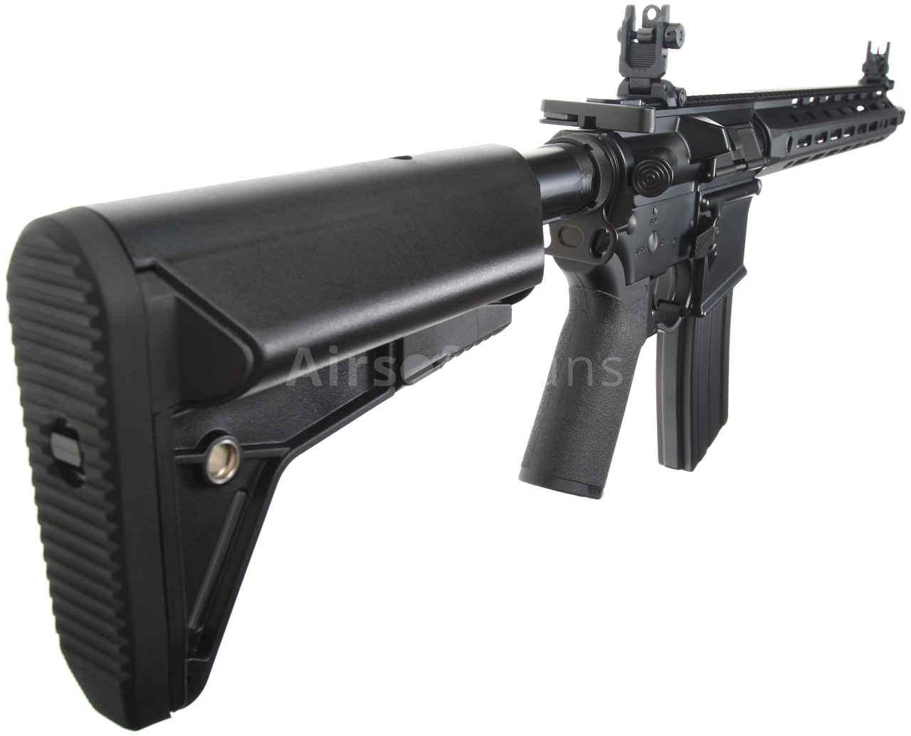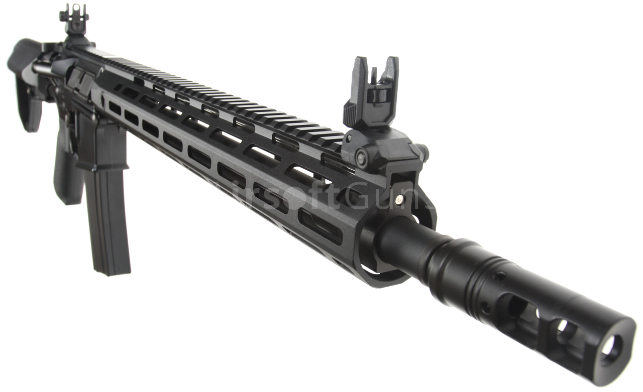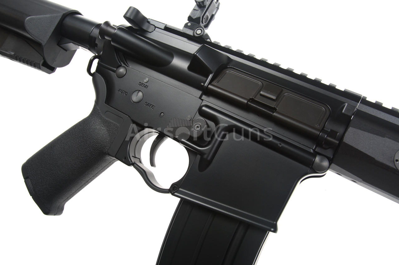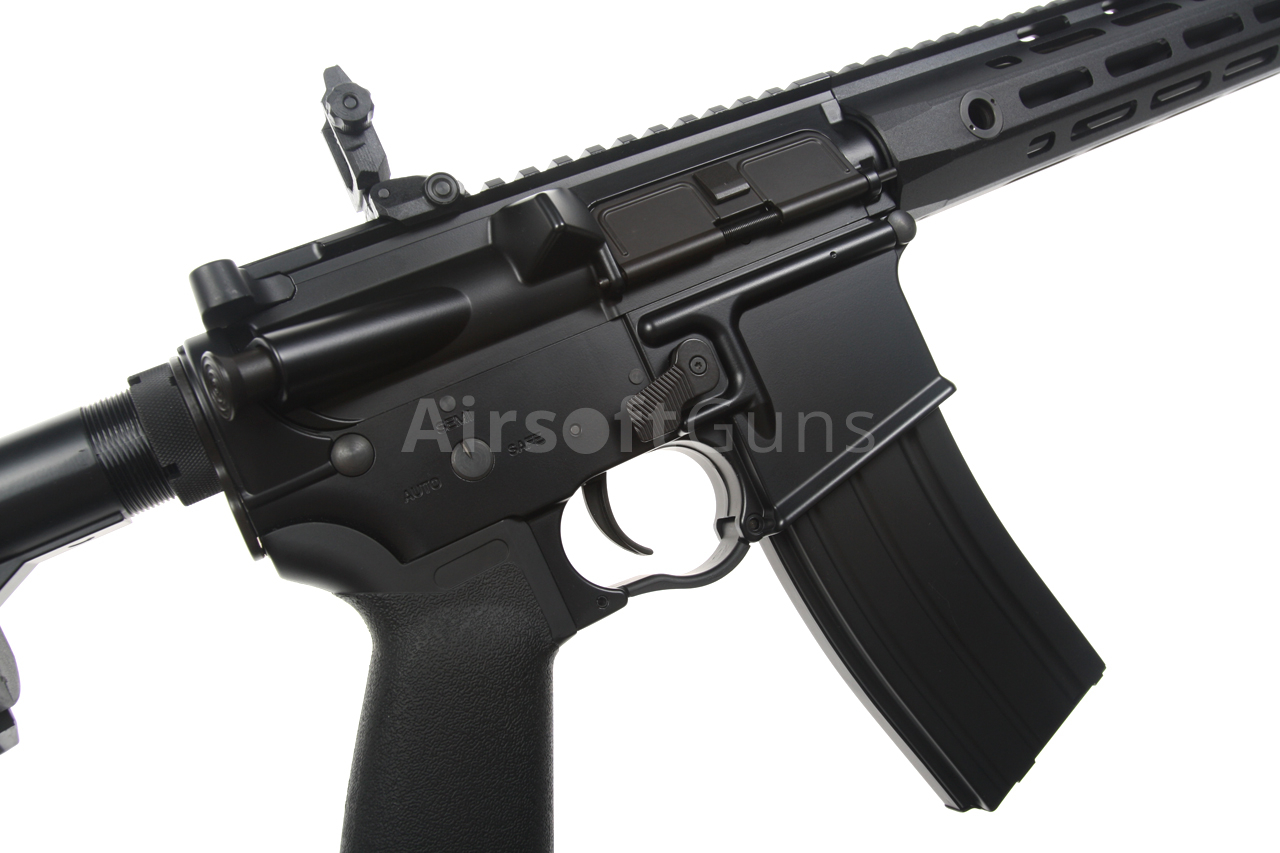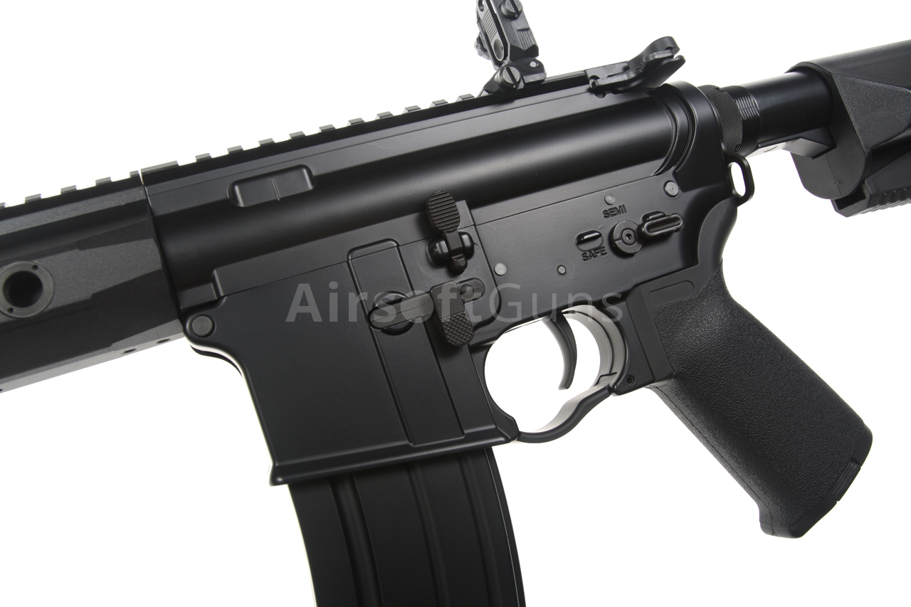 Zbraň je vybavená párom nízkoprofilových sklopných a plne nastaviteľných mieridiel. Napriek tomu ponúka jednoduchú montáž optického mieridla typu kolimátor alebo zväčšovacieho puškohľadu. Rukoväť typu Magpul perfektne sedí na telo a ponúka maximálnu ergonómiu. QD sloty na prednej časti a pažbe slúžia na pripevnenie popruhu, alebo je možné použiť oceľový obojstranný popruhový úchyt na zadnej strane tela. Zbraň má plne funkčný vyhadzovací otvor, plne funkčné tlačidlo poistky závorníka a rukoväť závorníka. Tlačidlo uvoľnenia zásobníka je obojručné, čím si zachováva vynikajúcu ergonómiu aj pre ľavákov. Verne je napodobená aj funkcia nosiča závorníka. Táto replika je jednoducho vyladená k dokonalosti, pokiaľ ide o vernú napodobeninu strelnej zbrane. Žiadne podvádzanie, na ktoré sme zvyknutí od iných, často drahších výrobcov.