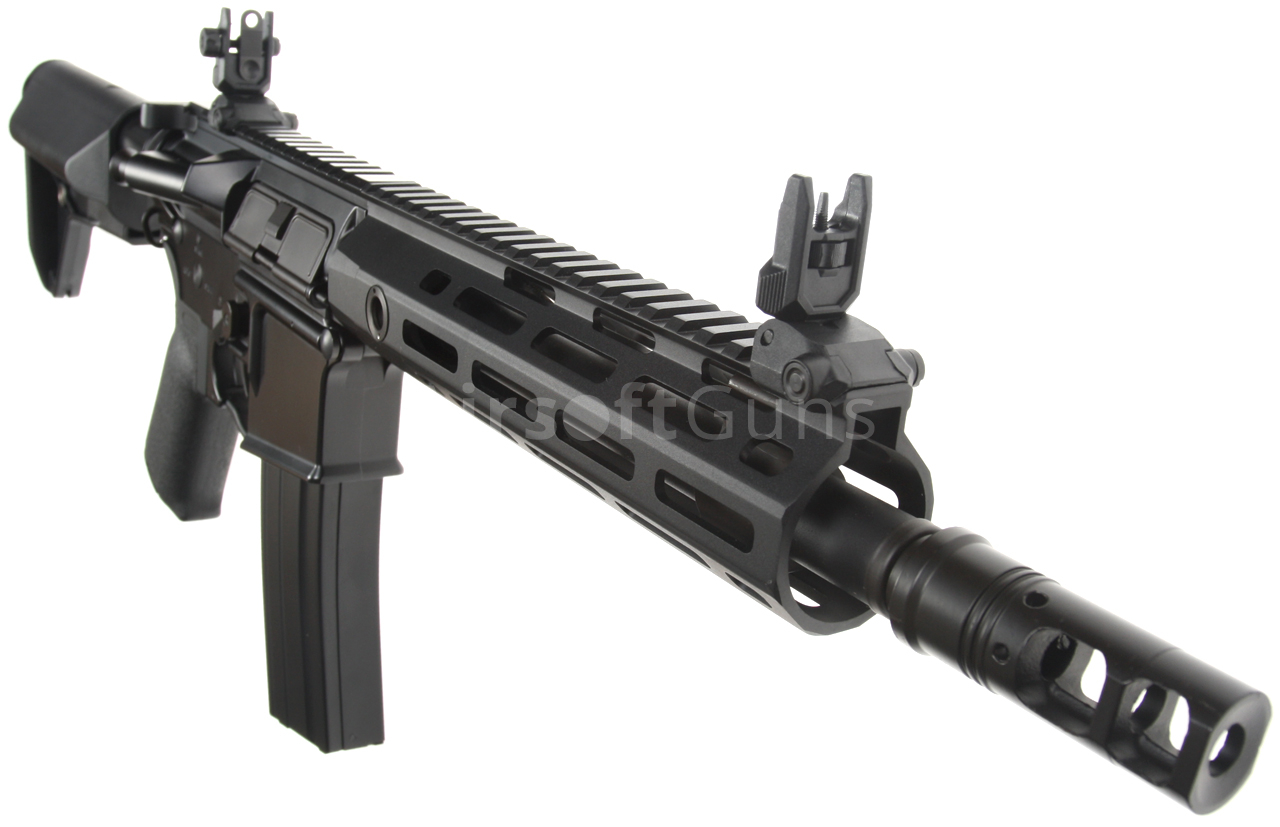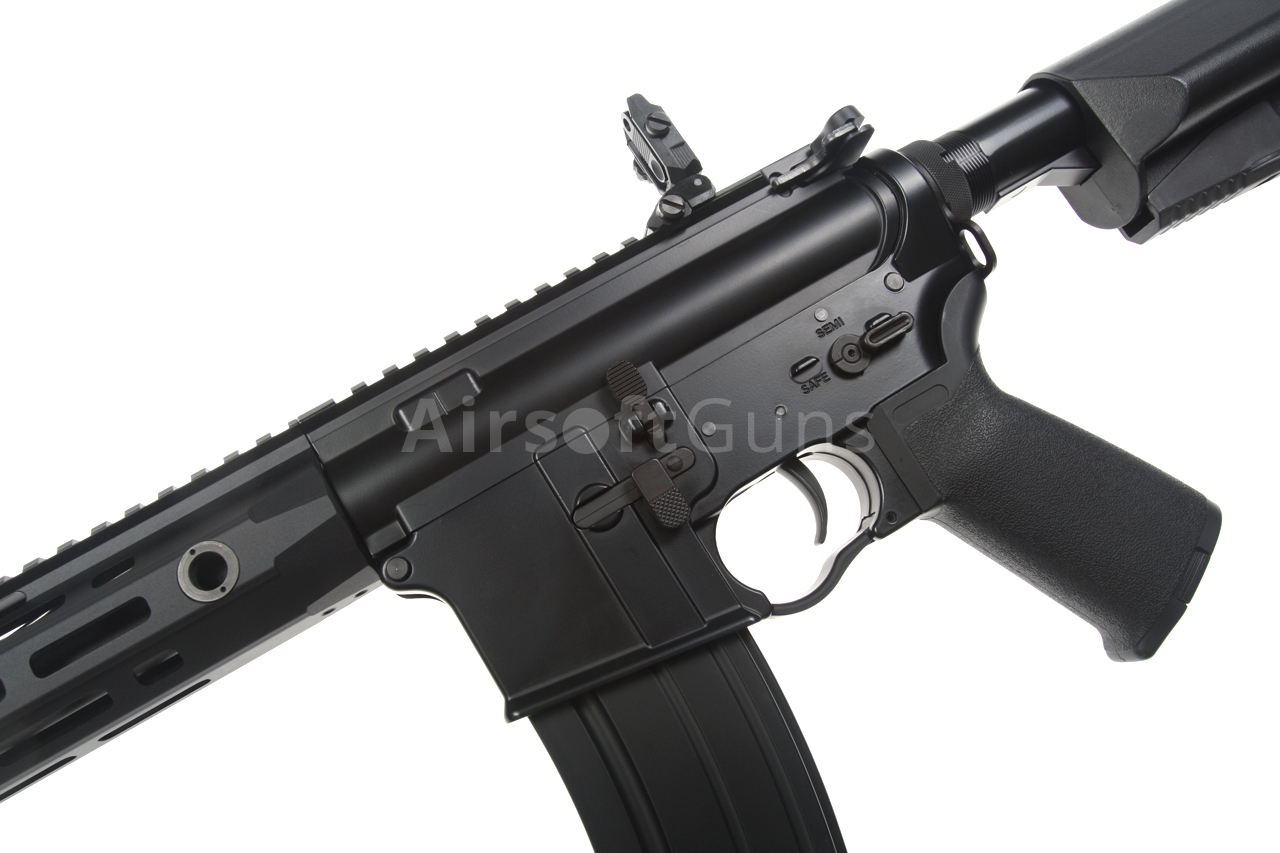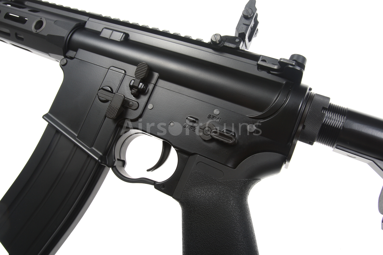 Zbraň je vybavená párom nízkoprofilových sklopných a plne nastaviteľných mieridiel. Napriek tomu ponúka jednoduchú montáž optického mieridla typu kolimátor alebo zväčšovacieho puškohľadu. Rukoväť typu Magpul perfektne sedí na telo a ponúka maximálnu ergonómiu. QD sloty na prednej časti a pažbe slúžia na pripevnenie popruhu, alebo je možné použiť oceľový obojstranný popruhový úchyt na zadnej strane tela. Zbraň má plne funkčný vyhadzovací otvor, plne funkčné tlačidlo poistky závorníka a rukoväť závorníka. Tlačidlo uvoľnenia zásobníka je obojručné, čím si zachováva vynikajúcu ergonómiu aj pre ľavákov. Verne je napodobená aj funkcia nosiča závorníka. Táto replika je jednoducho vyladená k dokonalosti, pokiaľ ide o vernú napodobeninu strelnej zbrane. Žiadne podvádzanie, na ktoré sme zvyknutí od iných, často drahších výrobcov.