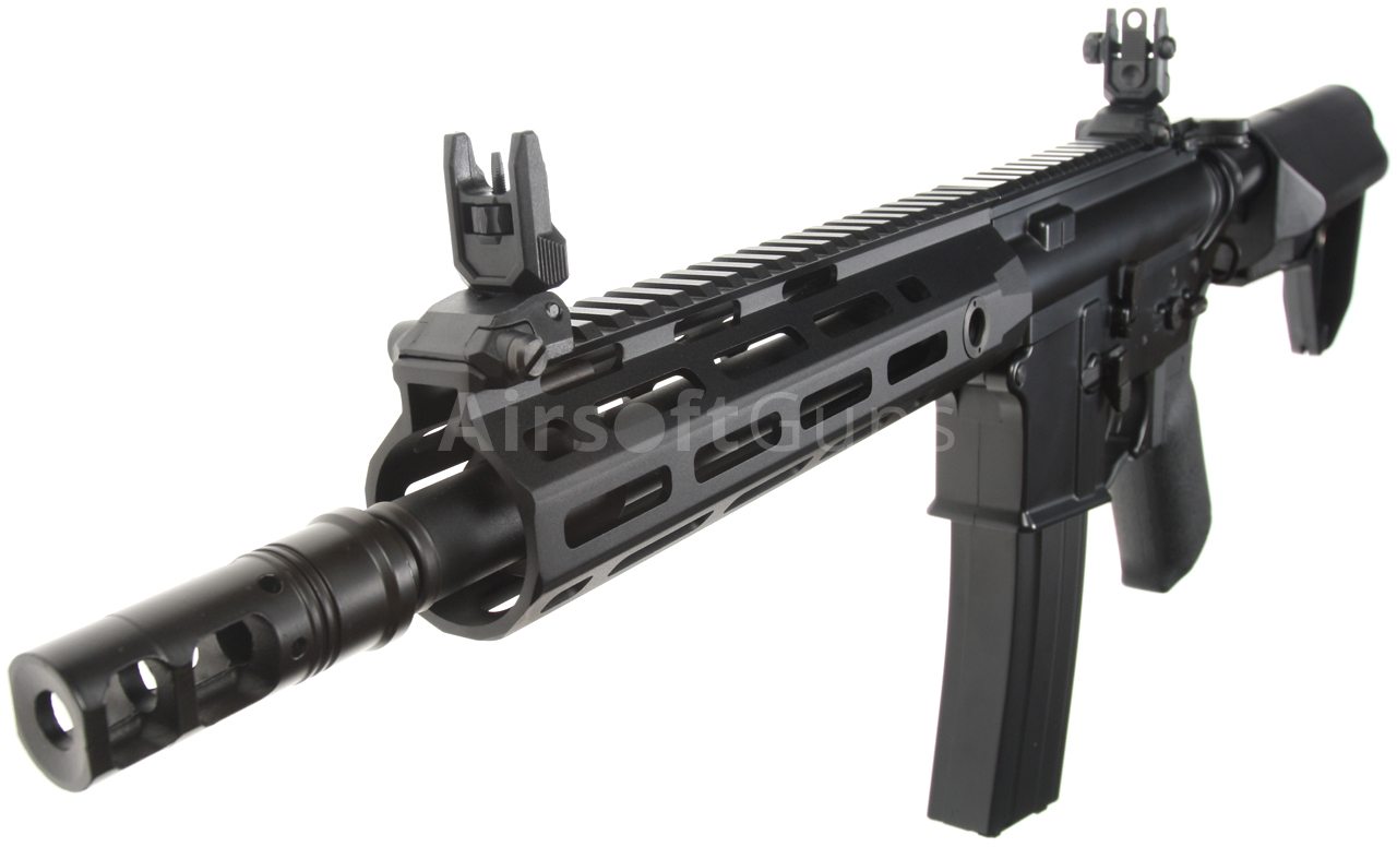 Zbraň je vybavená teleskopickou pažbou typu Magpul, ktorá ponúka 6 polôh nastavenia dĺžky a umožňuje vloženie odporúčaného typu LiPol batérie. Kovová vonkajšia hlaveň je vybavená robustným kovovým kompenzátorom, ktorý je pripevnený na ľavotočivý závit 14 mm.