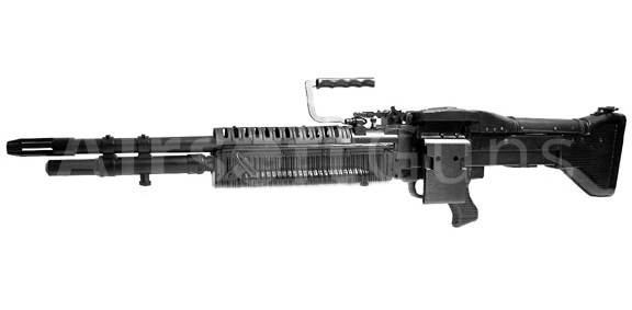 Elektrická airsoftová zbraň. Replika modelu M60 Seals od firmy TOP.Slávny univerzálny guľomet M60 si počas svojej histórie našiel mnoho odporcov aj obdivovateľov. M60 je primárna tímovo obsluhovaná zbraň palebnej podpory v jednotkách americkej armády používaná od 50. rokov do súčasnosti. Guľomet bol neslávne známy problematickú výmenou hlavne v poľných podmienkach. Manipulácia s rozžeravenú hlavnou sa nezaobišla bez azbestových rukavíc, ktoré boli pre výmenu nevyhnutné, pretože hlaveň neobsahovala žiadne manipulačné úchytky. Nielen pre tento neduh si zbraň vyslúžila od vojakov prezývku "Pig". Airsoftovy model zbrane M60 Seals je vyrábaný firmou TOP. Zbraň sa vyznačuje realistickým spracovaním všetkých detailov. Na rozdiel od M60 DX táto verzia postráda dvojnožku a prednou mušku. Hlaveň je oproti verzii M60 DX skrátená. Airsoftovy model obsahuje špeciálny typ prevedenia mechaboxu aj akýchkoľvek vnútorných funkčných dielov. Zásobník je umiestnený v tele zbrane a má kapacitu 1200 BB.