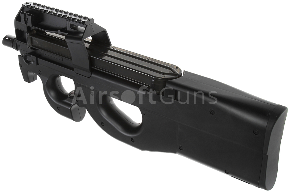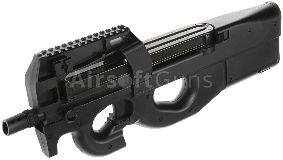 Elektrická airsoftová zbraň. Replika modelu P90 [BY-809] s plastovým mechaboxem od firmy D-Boys.Elektrická airsoftová zbraň. Replika modelu P90 [BY-809] s plastovým mechaboxem a telom z tvrdeného ABS plastu. Vrchný diel je osadený tromi RIS lištami pre pripevnenie optického zameriavača a ďalšieho taktického príslušenstva.