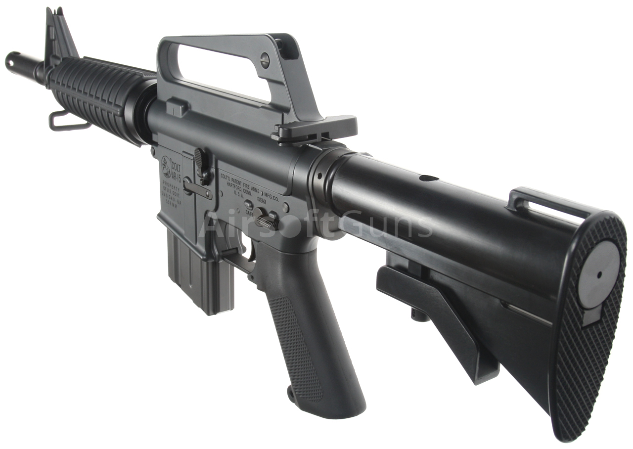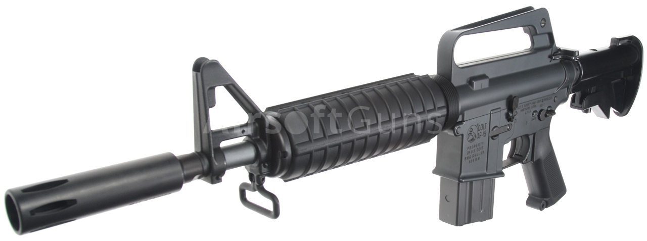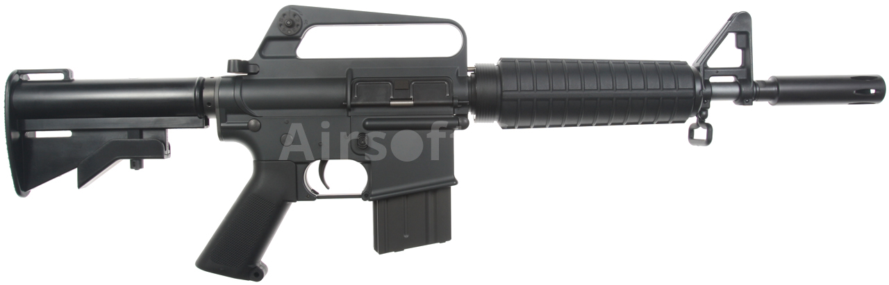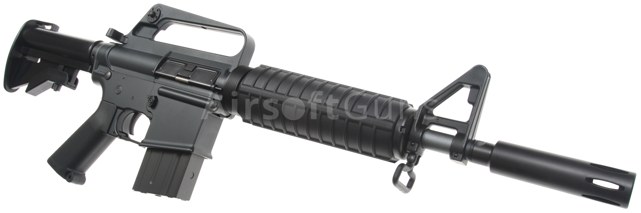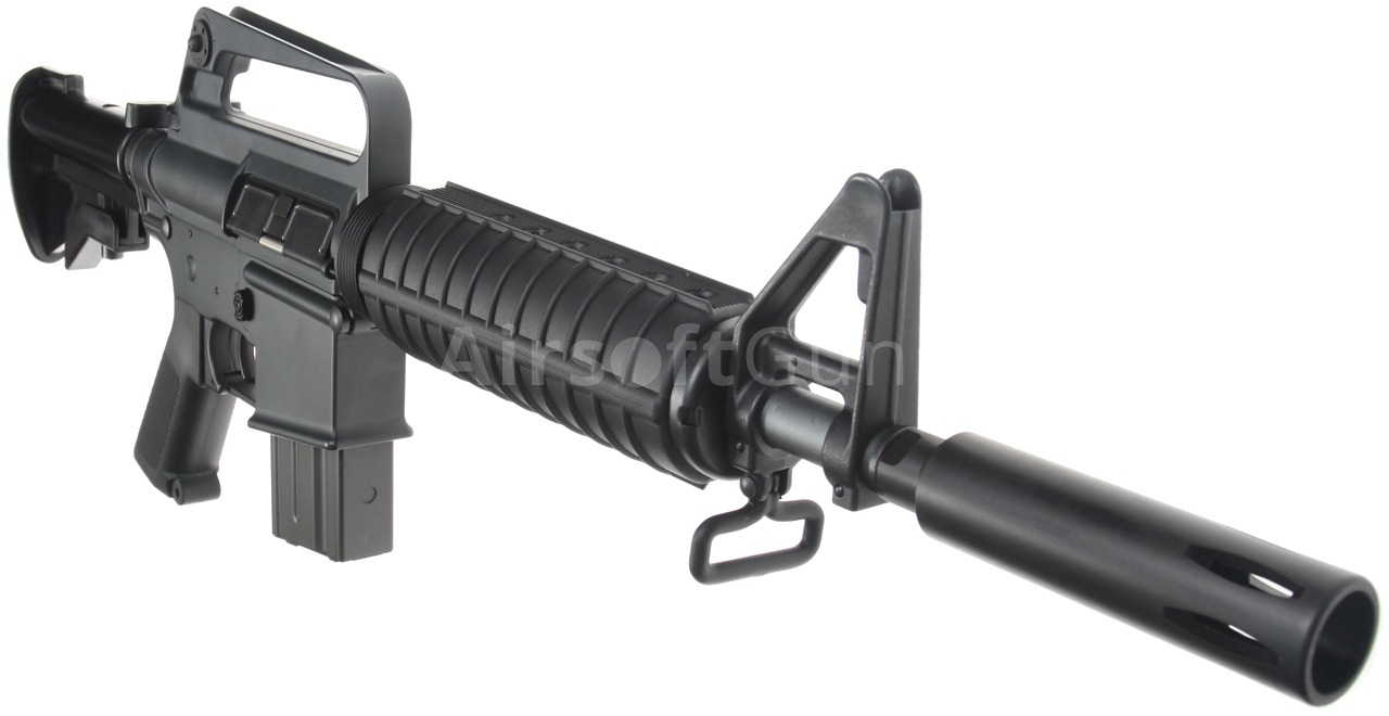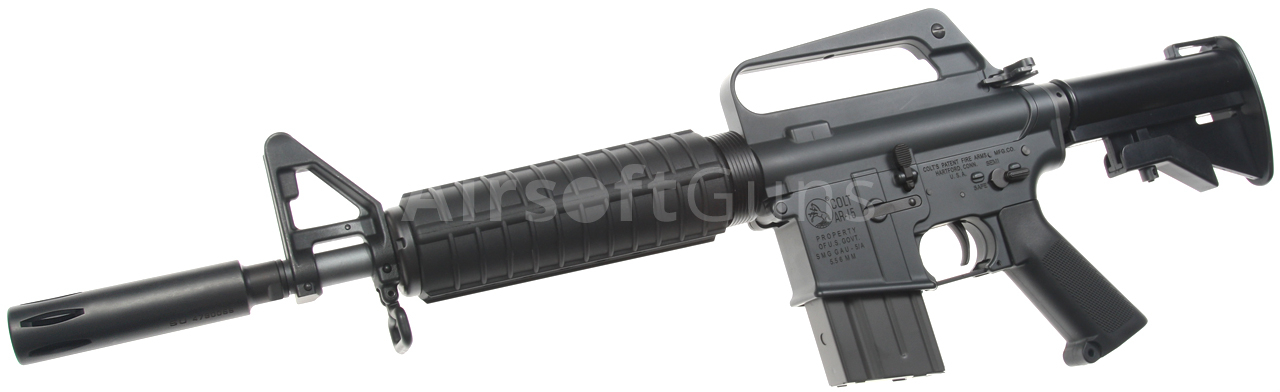 Elektrická airsoftová zbraň. Replika XM177, Colt 610, USAF GAU-5/A [SPS-R001] Cyma Platinum Edition v celokovovom a vysoko kvalitnom prevedení v šedej farbe. Model Colt 610 bol zavedený do amerických vzdušných síl pod označením GAU-5/A počas vojny vo Vietname. Jeho typickými rysmi sú skrátená hlaveň a absencia predného pomocného mechanizmu (forward assist). Túto zbraň používala aj americká armáda pod označením XM177.