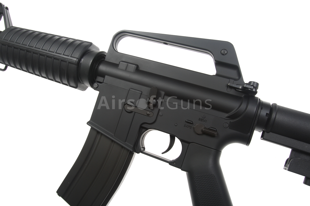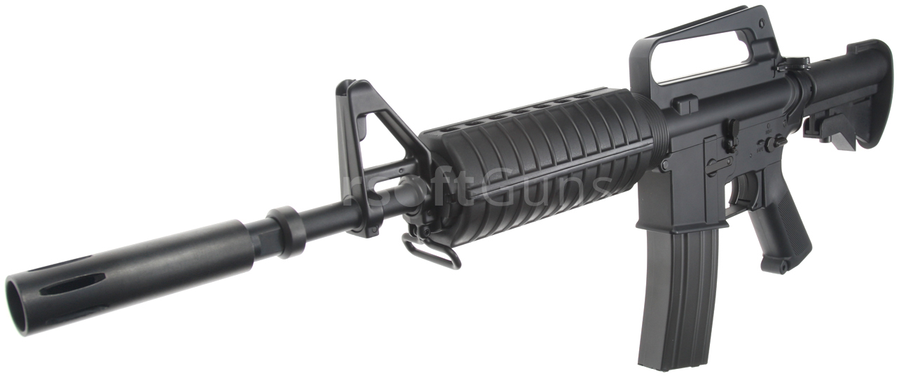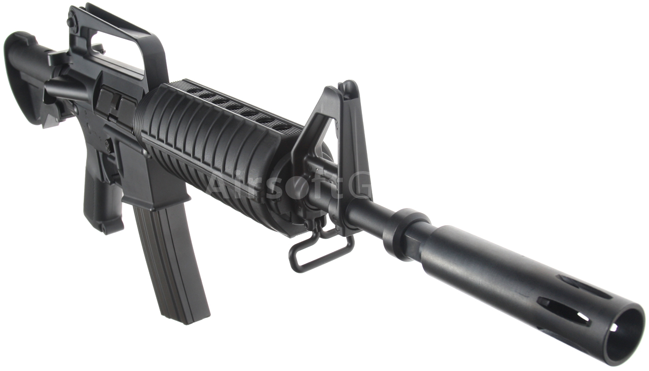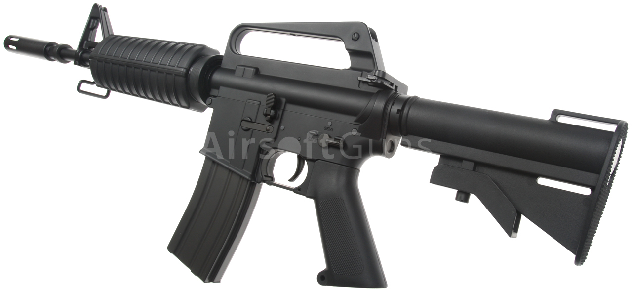 Elektrická airsoftová zbraň. Replika XM177 E2 Vietnam verzia [CM.009F] Cyma Standard Edition v celokovovom vyhotovení s elektronickým spínaním (mosfet/ETU) v čiernej farbe. Karabína XM177 E2 bola zavedená počas vojny vo Vietname a je skrátenou verziou pušky M16.