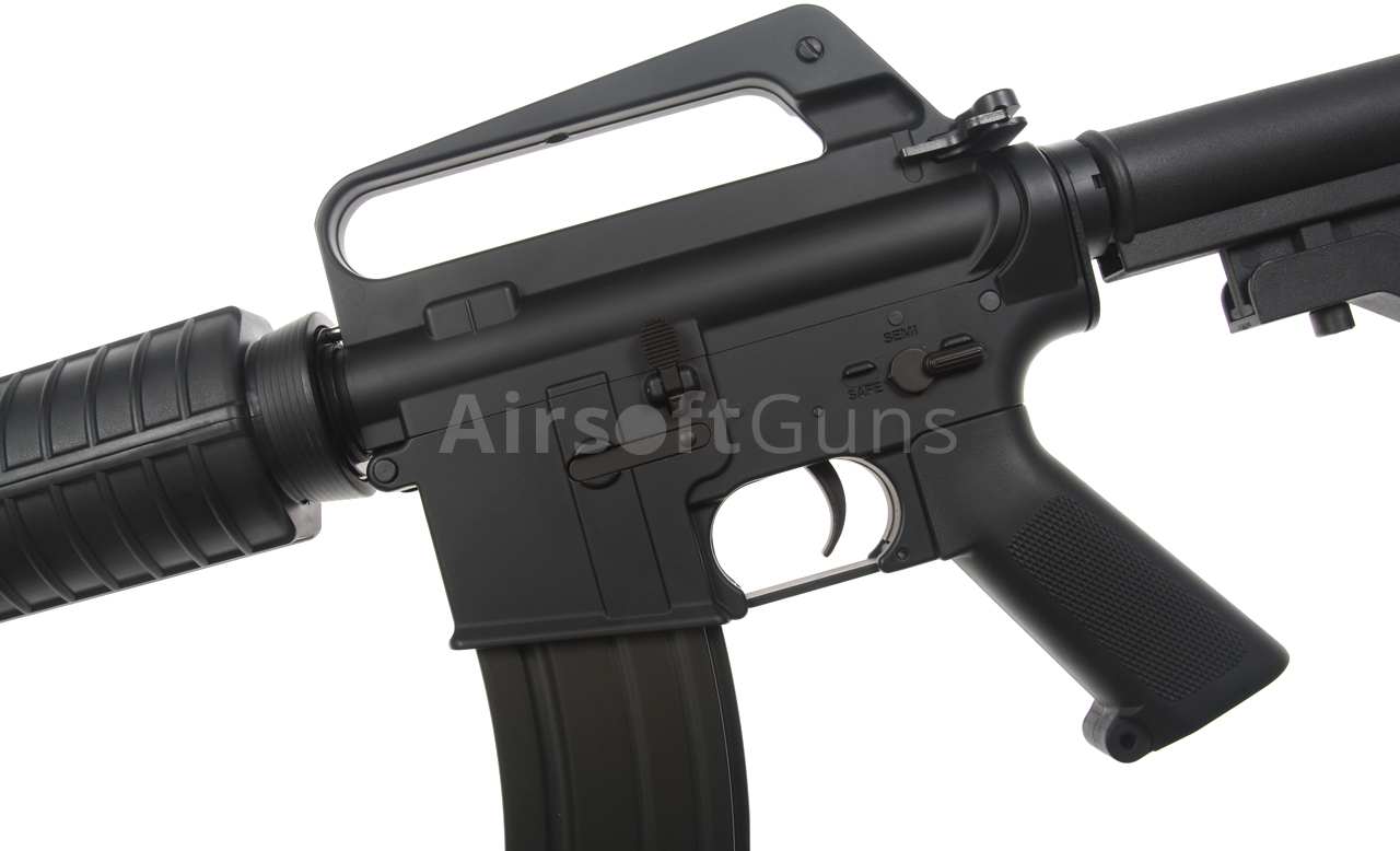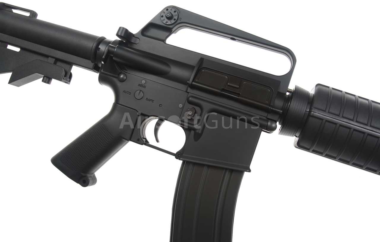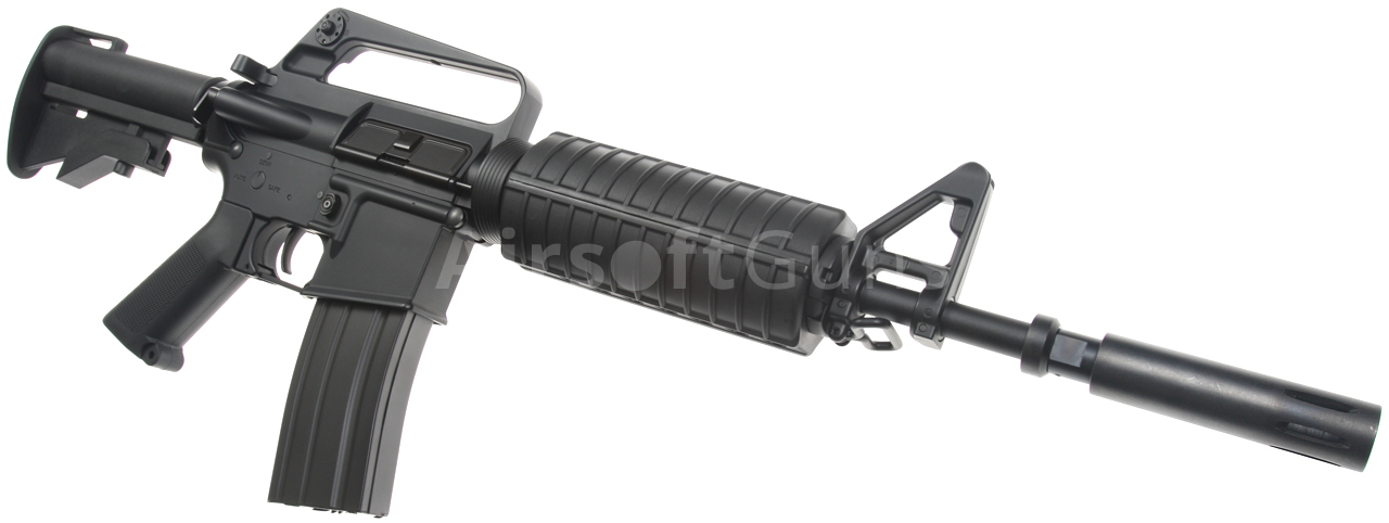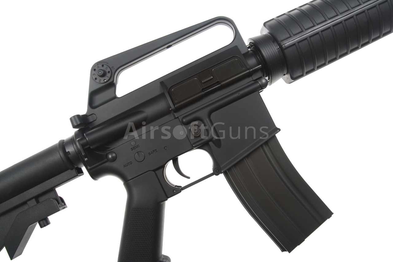 Elektrická airsoftová zbraň. Replika XM177 E2 Vietnam verzia [CM.009F] Cyma Standard Edition v celokovovom vyhotovení s elektronickým spínaním (mosfet/ETU) v čiernej farbe. Karabína XM177 E2 bola zavedená počas vojny vo Vietname a je skrátenou verziou pušky M16.