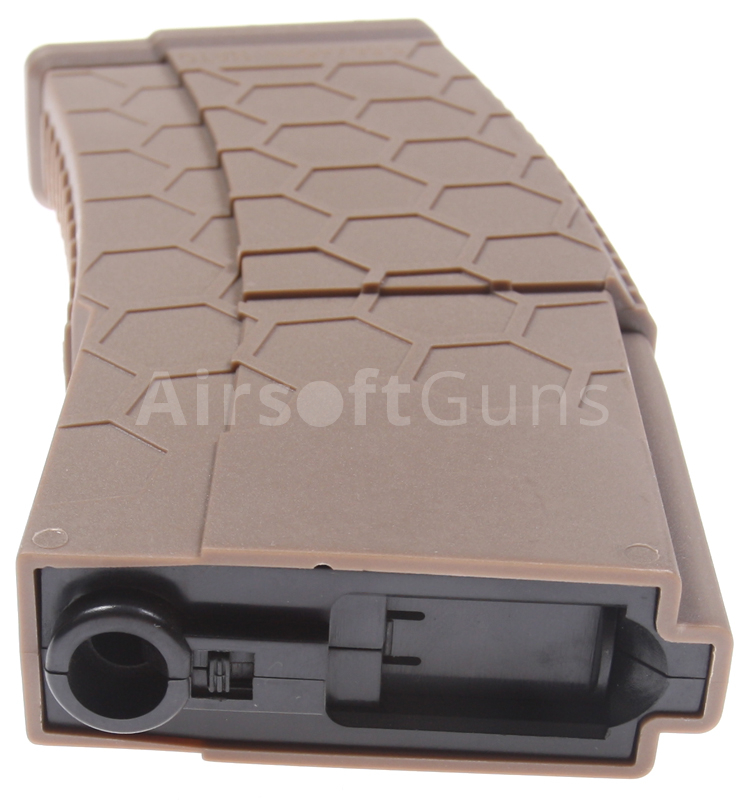 Naťahovací zásobník (Hicap) pre zbrane typu M4 AEG od Cyma. Zásobník TAN v pieskovej farbe je vyrobený z ľahkého a odolného polyméru v štýle HEXMAG. Kapacita: 300 BB.