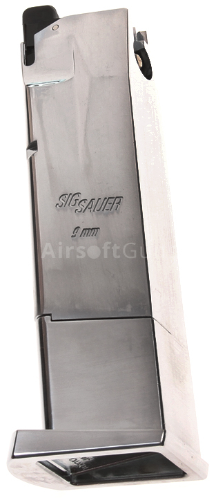 Zásobník pre plynovú (Blow Back) zbraň Sig Sauer P226 od firmy Tokyo Marui v chrómovom prevedení.Zásobník pre plynovú (Blow Back) zbraň Sig Sauer P226 od firmy Tokyo Marui v chrómovom prevedení.